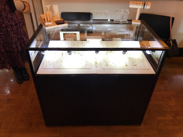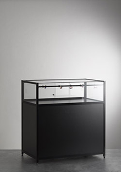 H 920 L 1000 P 600 , profil laqué noire , 1 rail lumineux LED , partie vitrine avec 2 portes coulissantes avec serrure , fond intérieur noire , coffre de rangement avec serrure