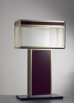 H 1800 L 1100 P 500 sur pieds , finition champagne et corail , 8 spots 50 w , socle interieur gainé , 2 portes coulissantes hautes avec serrure , coffre de rangement en dessous avec serrure