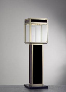 H 1800 L 500 P 500 profil anodisé champagne , glace laquée noire , 5 spots 50 w , 1 porte ouvrante avec serrure