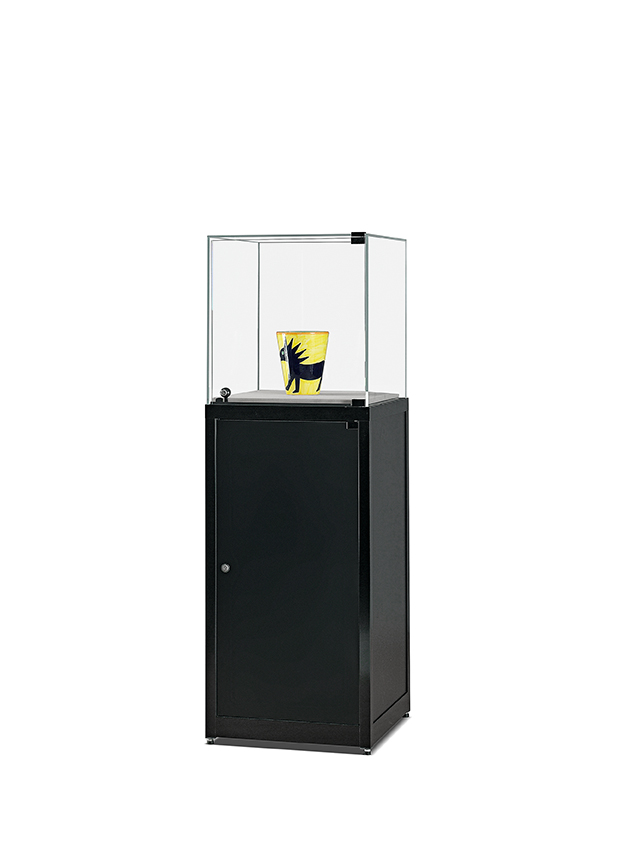 Vitrine cloche H 1500 L 500 P 500 , partie vitrine avec porte ouvrante, coffre de rangement, serrure haute et basse