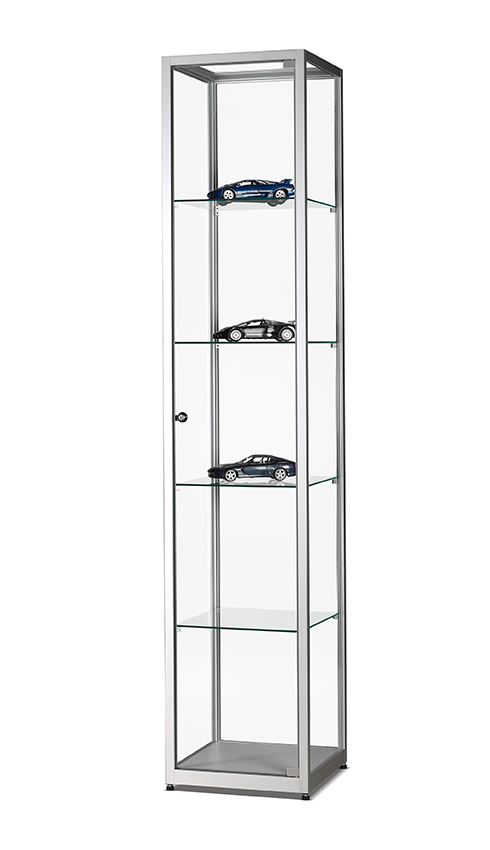 H 1984 L 400 P 400 profil aluminium argent, 4 étagères réglables, une porte ouvrante avec serrure